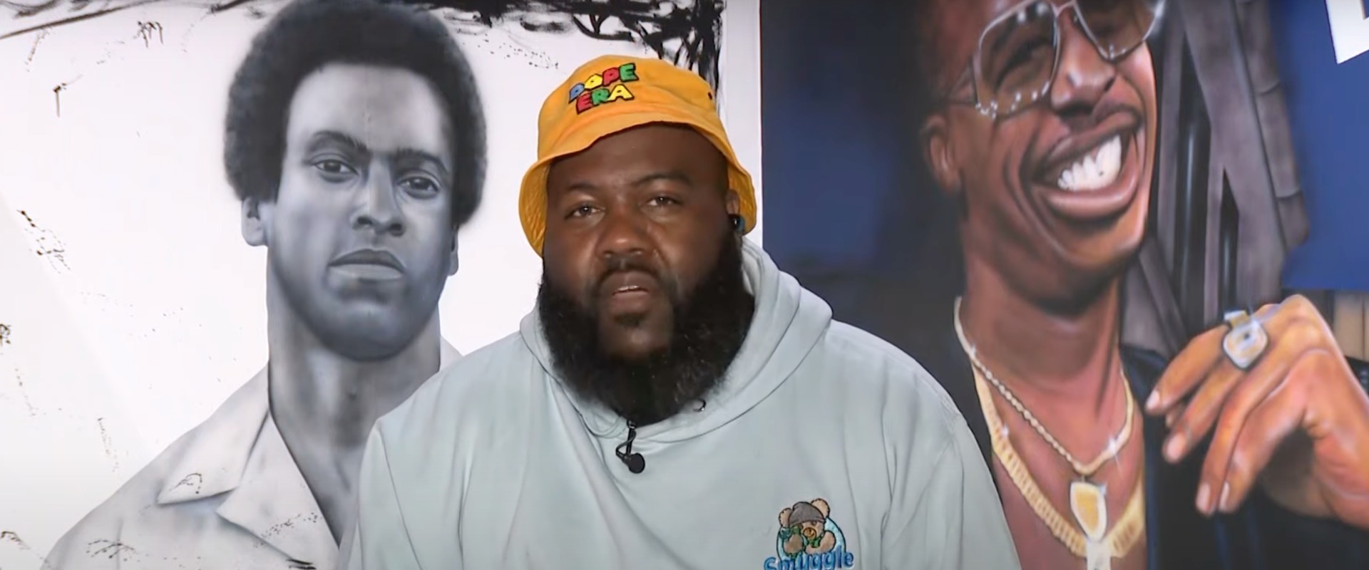 "It was just a collection of '90s exhibits and arts," the Oakland born MC explained. "My heroes and icons and people that I grew up on have murals here. My rap dad Too $hort, my childhood hero [MC Hammer], and the blueprint for social recognition of Black identity, Huey Newton [Black Panther Party leader]."